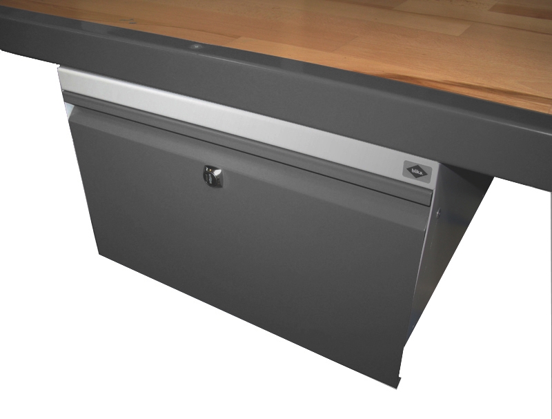 Ekstra høj enkeltskuffe med stålkugleudtræk og cylinderlås.