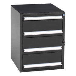 Skuffeskab SS 1.4A med letløbende skuffer, lejret i skinner med stålkugler og med 100% udtræk. Skufferne er udstyret med skuffespærre. Toppen er som standard udstyret med en riflet gummimåtte. Skabet har i alt 4 skuffer - 3 stk. på 198 mm. og 1 stk. på 66 mm. i højden.