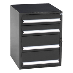 Skuffeskab SS 1.4B med letløbende, skuffer lejret i skinner med stålkugler og med 100% udtræk. Skufferne er udstyret med skuffespærre. Toppen er som standard udstyret med en riflet gummimåtte. Skabet har i alt 4 skuffer - 2 stk. på 198 mm. og 2 stk. på 132 mm. i højden.