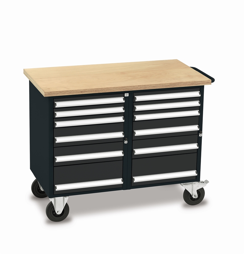Værkstedsvogn med to skuffekabinetter. Bestående af 2 x 6 skuffer med 100 % udtræk og mulighed for mange forskellige skuffeinddelinger.